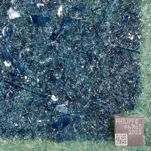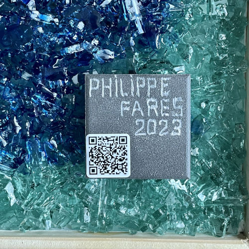 Là encore, calcin et résine de coulée sont les principaux matériaux qui constituent cette toile « Float Shards ».