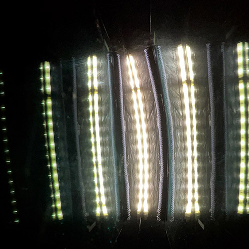 Un fin ruban lumineux éclaire l’entre deux lames, depuis la partie inférieure de la transparence.