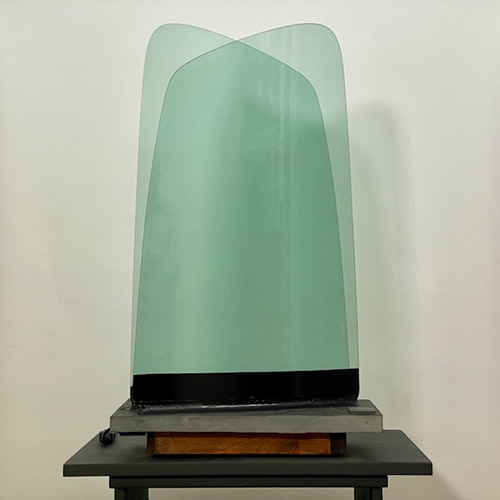 Il s’agit de verres trempés, issus de l’industrie automobile, teintés en vert dans la masse, et produits selon le procédé « Float ».