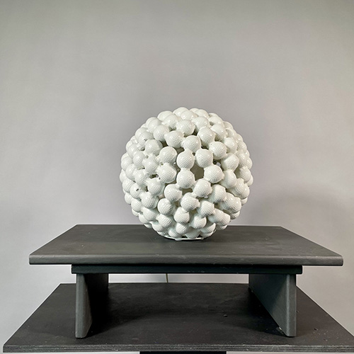 Philippe Fares, utilise une fois encore, une loi de composition ordonnée et itérative, qui lui permet d’approcher la sphère parfaite, figure essentielle de sa préoccupation plastique.