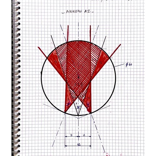 A2 is the second work of the four circles series. With the same diameter as the other three pieces (sixty centimeters), this ring is structured by a periodic ceramic latticework, which is reproduced in several of the artist’s creations.