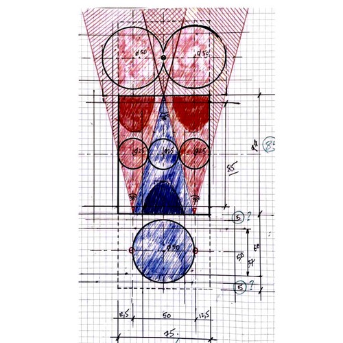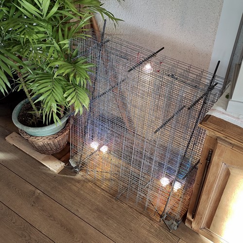 The artwork is a stack of square mesh welded wire mesh. Separated from each other by 1 cm, the metal sheets form a parallelepiped of 75 x 85 cm, inclined by 7°. The set is made hyperstatic by means of iron rods attached to each panel.